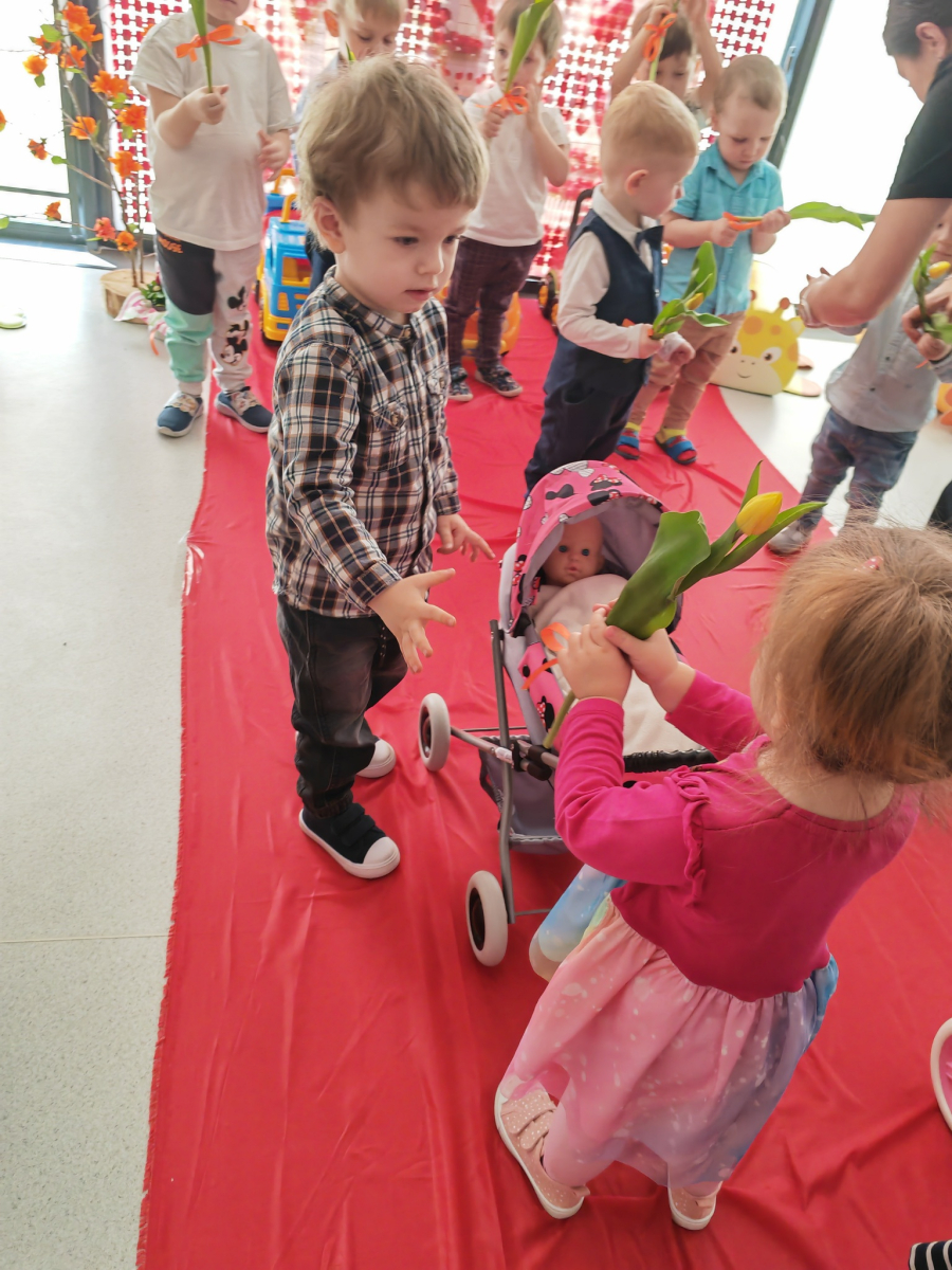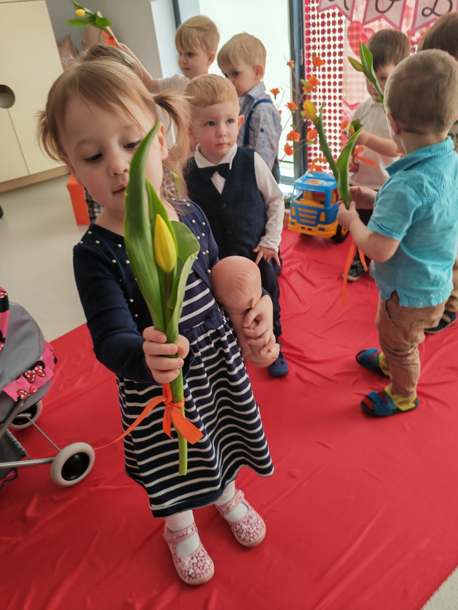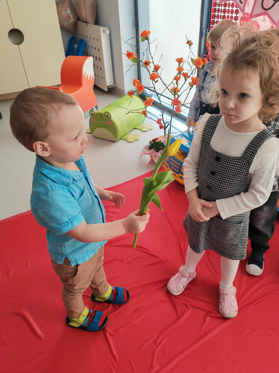 W naszym Żłobku panowała wyjątkowo radosna i ciepła atmosfera podczas "Dnia Kobiet". Nasze małe damy obchodziły swoje święto z uśmiechem, radością i ogromnym entuzjazmem. Z okazji tego wyjątkowego swięta każda z dziewczynek otrzymała serdeczne życzenia, kwiaty oraz drobne upominki, które sprawiły im wiele radości. Były uśmiechy, miłe słowa i chwile pełne wzruszenia.