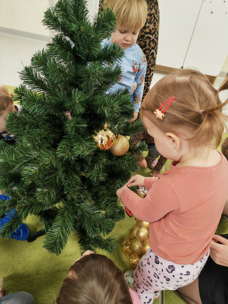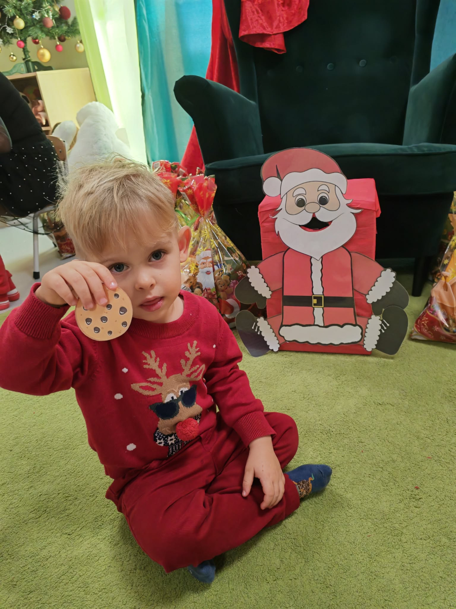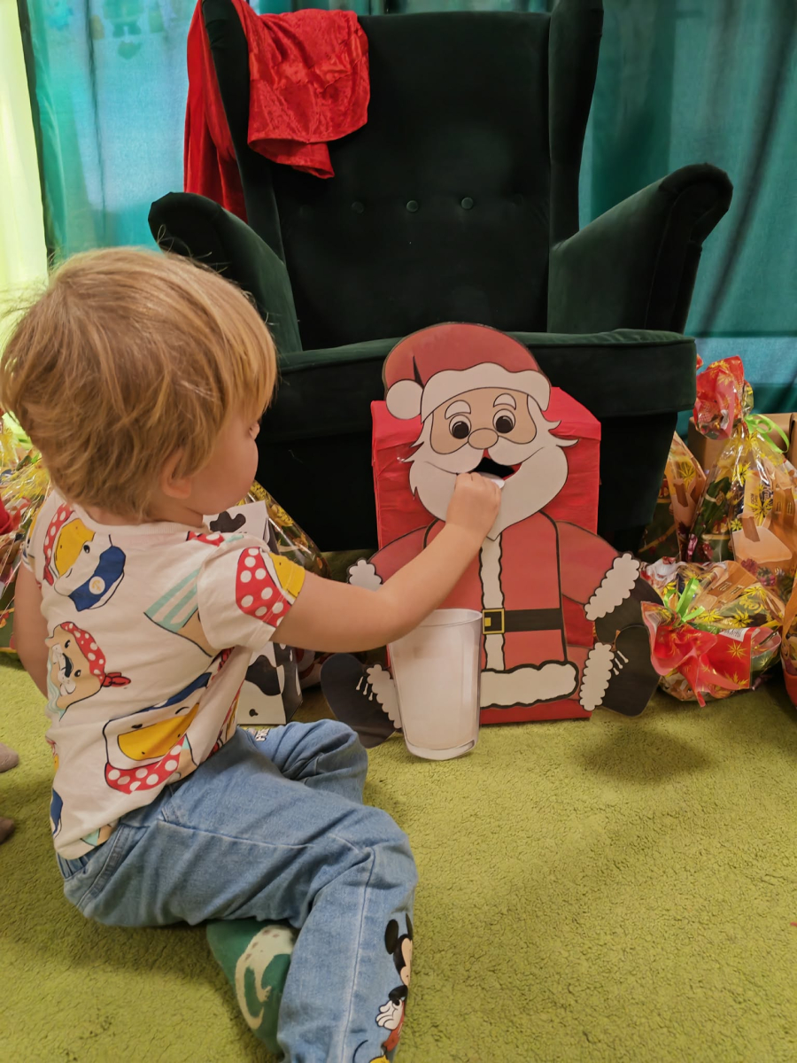W naszym Żłobku przygotowania do wizyty Świętego Mikołaja były wyjątkowym i pełnym radości czasem. Maluchy z ogromnym zaangażowaniem ubierały choinkę, wybierając bombki i kolorowe ozdoby. Następnie dzieci przyklejały do swoich listów obrazki przedstawiające to, co chciałyby otrzymać od Mikołaja. To były listy pełne dziecięcych marzeń, które z dumą wrzucały do specjalnej skrzynki. W oczekiwaniu na niezwykłego gościa dzieci brały udział w zabawach oraz pracach plastycznych, a podekscytowanie rosło z każdym dniem. Kiedy w końcu pojawił się Święty Mikołaj, było wiele uśmiechów, radości, ale i odrobina nieśmiałości. Na zakończenie, w ramach zabawy, dzieci karmiły Mikołaja ciasteczkami, dziękując mu za otrzymane prezenty. Był to piękny, pełen emocji czas, który na długo pozostanie w pamięci dzieci.