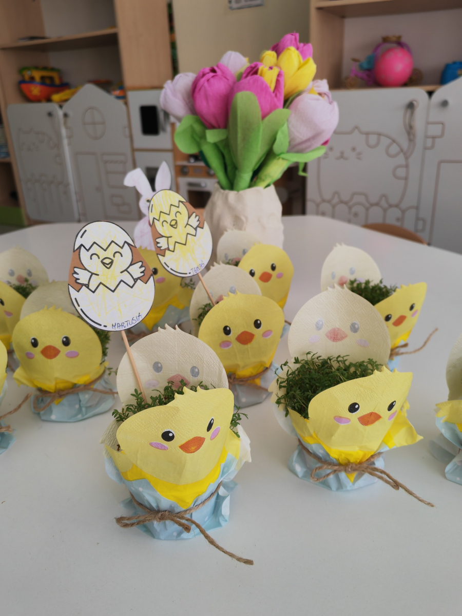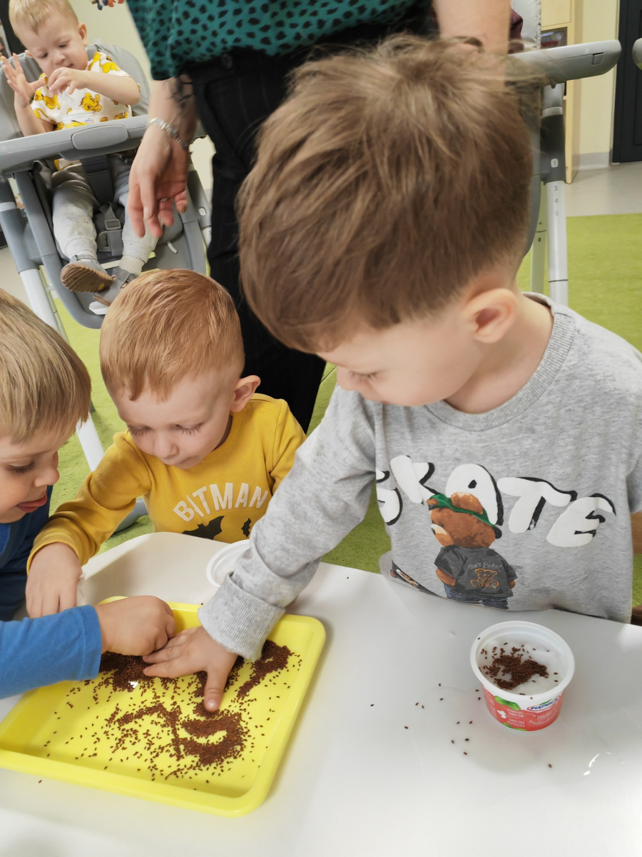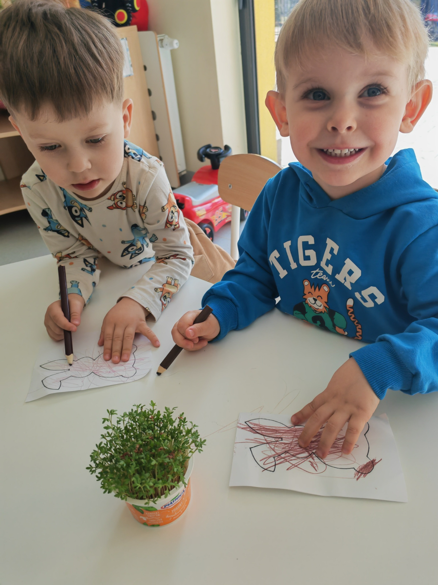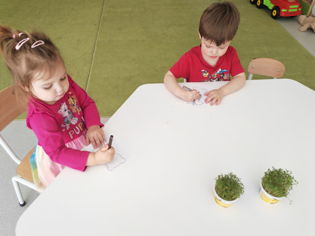 W naszym żłobku rozpoczęliśmy radosne przygotowania do Świąt Wielkanocnych. Dzieci z ogromnym zaangażowaniem i ciekawością siały rzeżuszkę, poznając przy tym pierwsze etapy wzrostu roślin. Była to doskonała okazja do rozwijania cierpliwości, współpracy oraz troski o przyrodę. Podczas zajęć maluchy ćwiczyły również małą motorykę i koordynację ruchową, a wszystko odbywało się w atmosferze radości i wspólnej zabawy.
