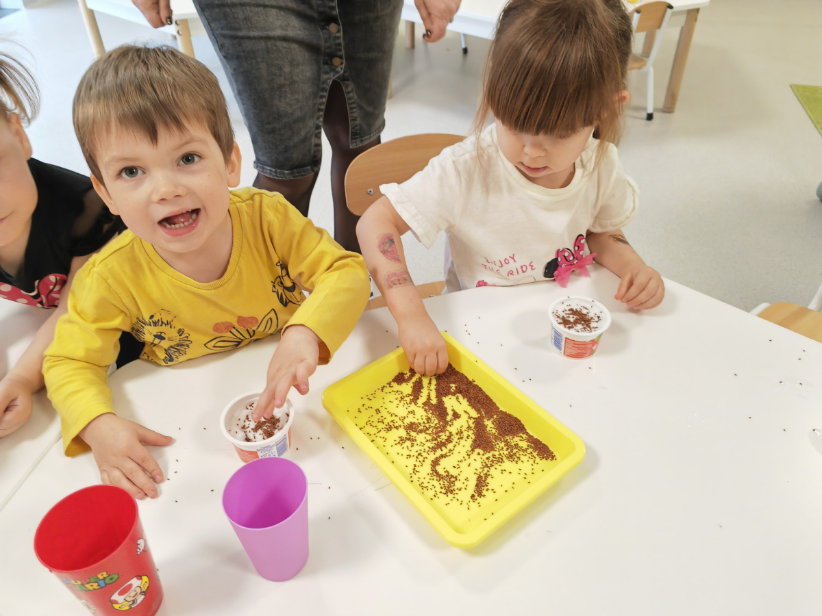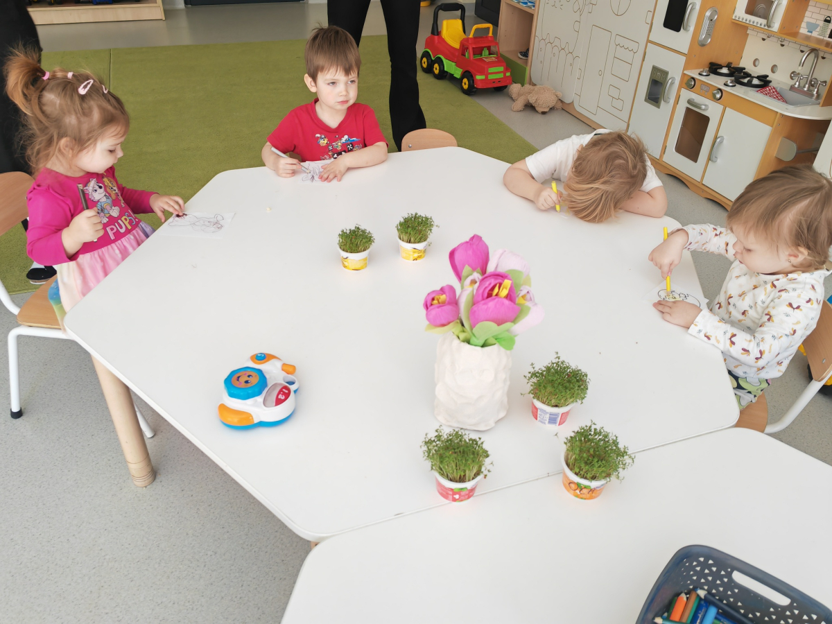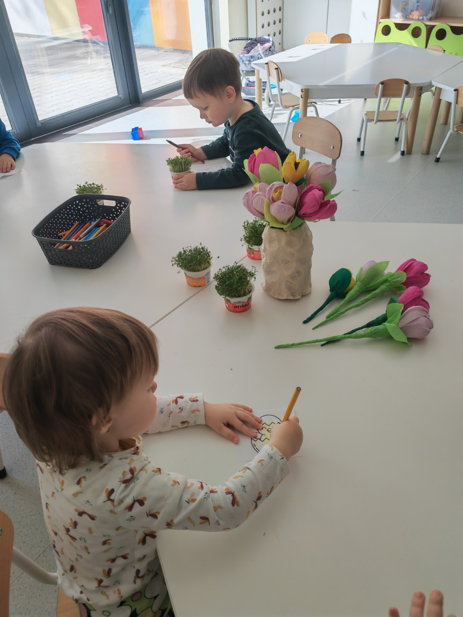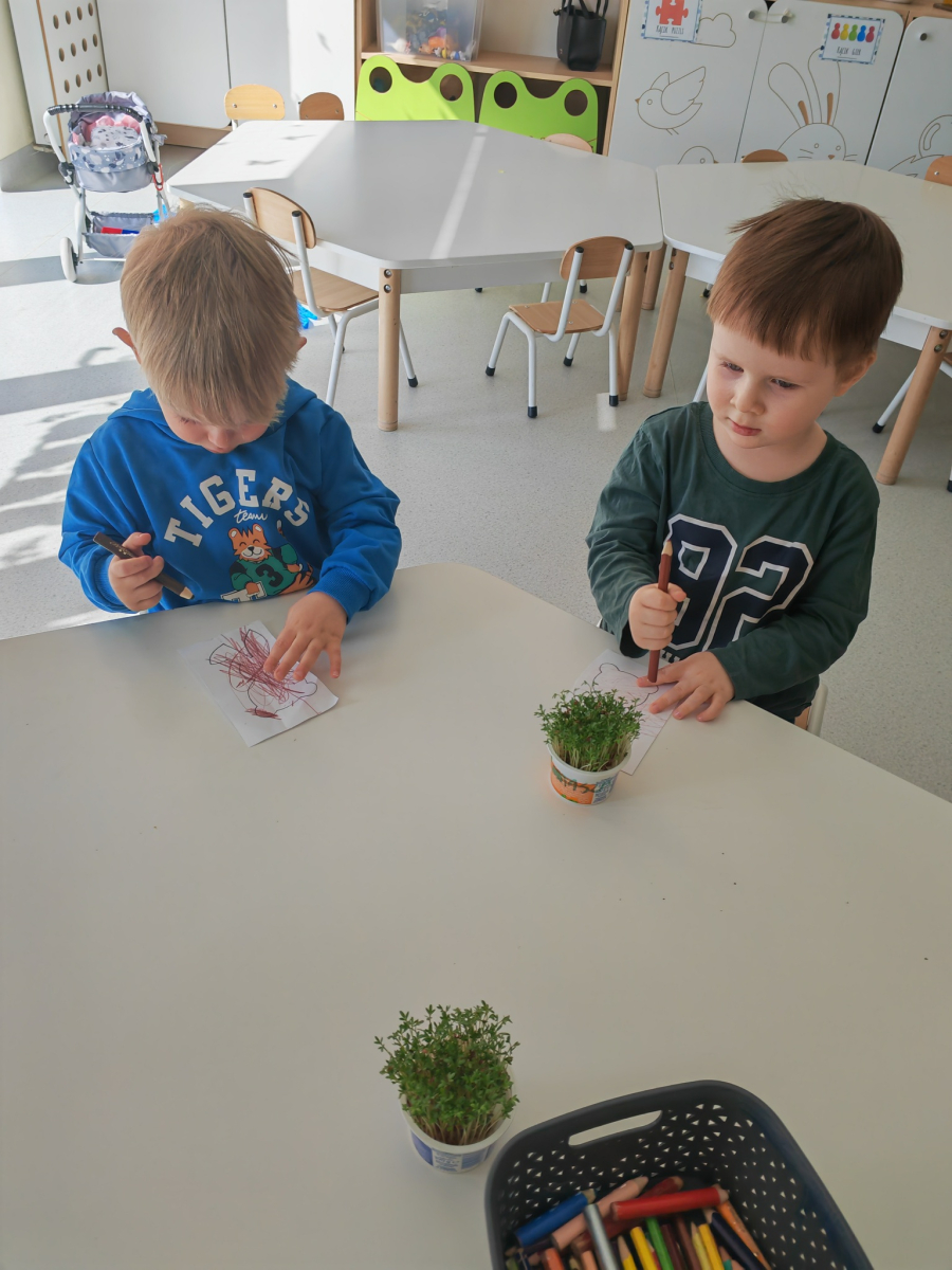 W naszym żłobku rozpoczęliśmy radosne przygotowania do Świąt Wielkanocnych. Dzieci z ogromnym zaangażowaniem i ciekawością siały rzeżuszkę, poznając przy tym pierwsze etapy wzrostu roślin. Była to doskonała okazja do rozwijania cierpliwości, współpracy oraz troski o przyrodę. Podczas zajęć maluchy ćwiczyły również małą motorykę i koordynację ruchową, a wszystko odbywało się w atmosferze radości i wspólnej zabawy.