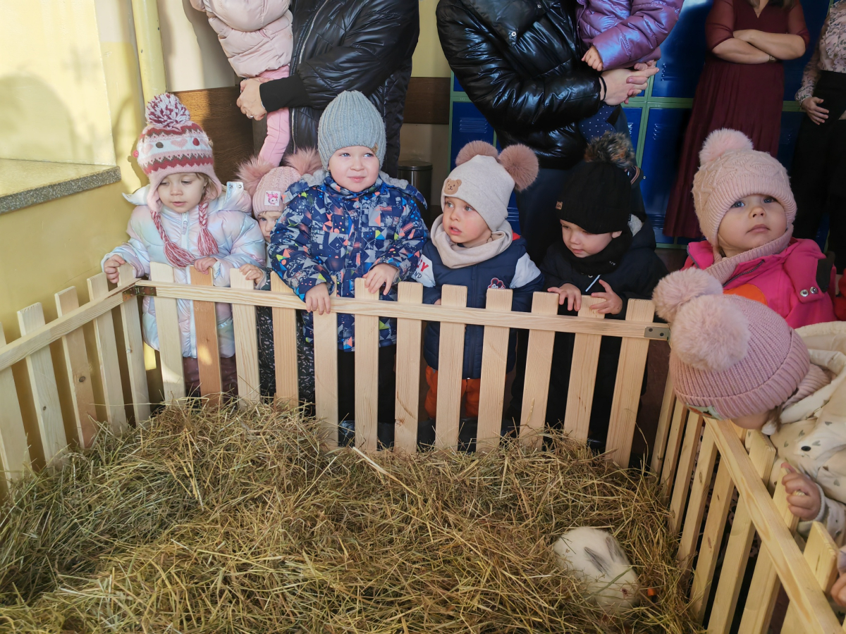 Dzieci odwiedziły Szkołę Podstawową w Promniku, gdzie miały okazję obejrzeć króliki rasy angora. Z dużym zainteresowaniem obserwowały mamę oraz trzy małe, białe króliczki. Zwierzęta wzbudziły wśród dzieci zachwyt i radość. Podczas wizyty dzieci poznały wygląd królików oraz dowiedziały się, jak wyglądają i czym się charakteryzują te zwierzęta. Spotkanie było dla dzieci ciekawym i wartościowym doświadczeniem.